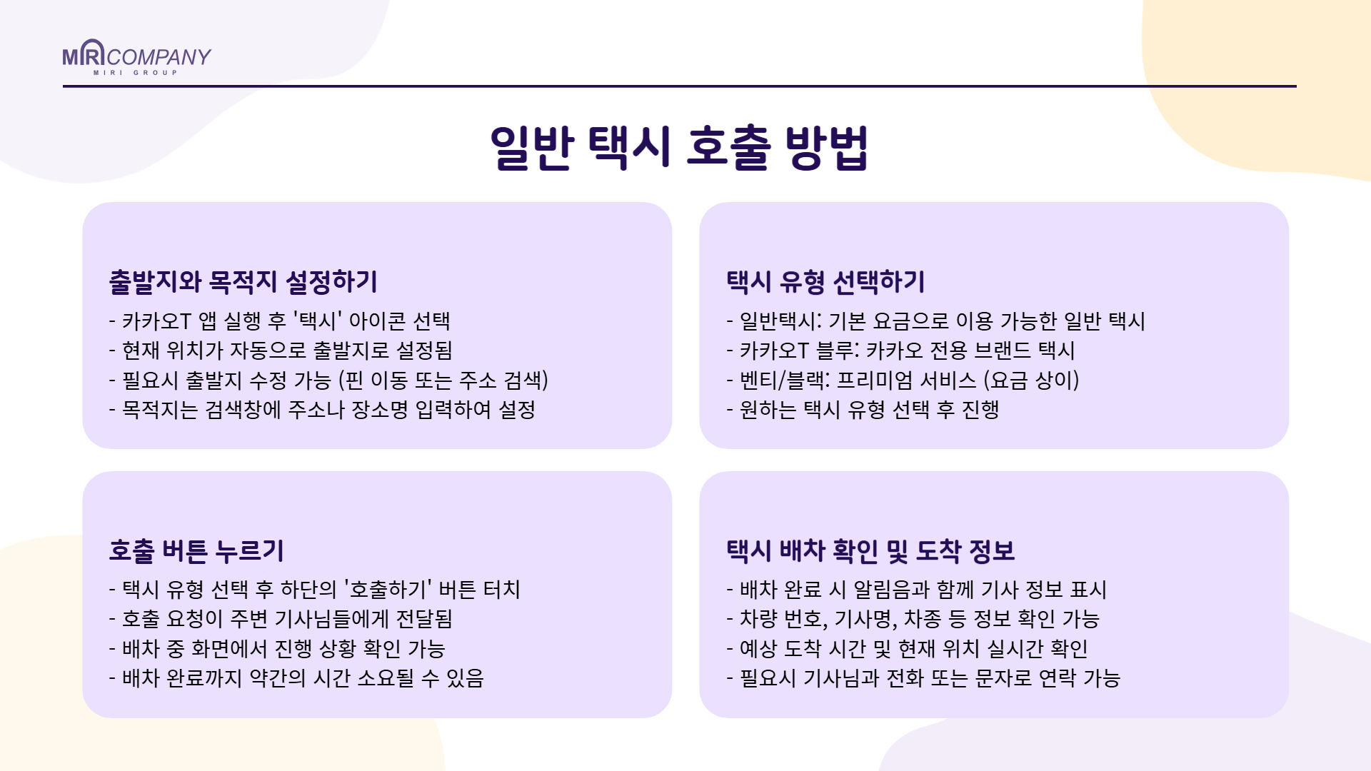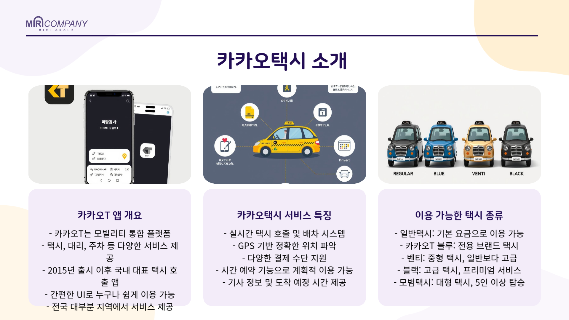 | 장점 | 원하는 시간에 확실하게 택시를 잡을 수 있어 중요한 일정에 늦을 걱정이 없음 |